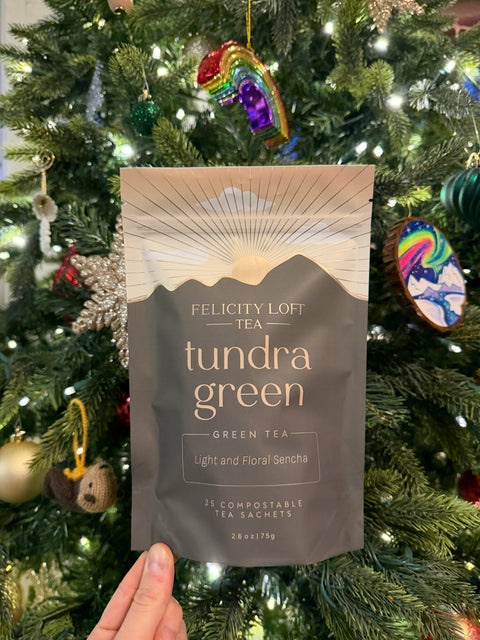 Our Tundra Green Tea now in compostable teabags! We use a pyramid shaped sachet filled with the same tea as our loose leaf.